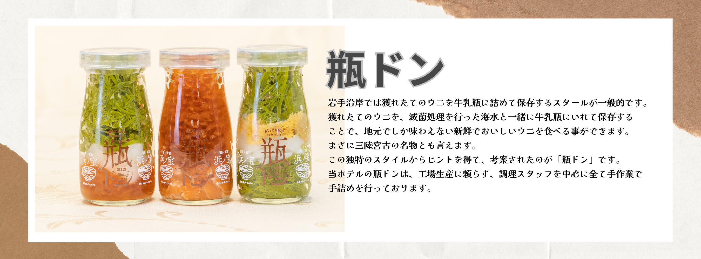 【送料込み】”瓶ドン 浜ノ宝” 3本セット&ホテル特製うに炊き込みご飯の素セット